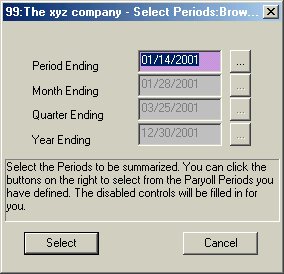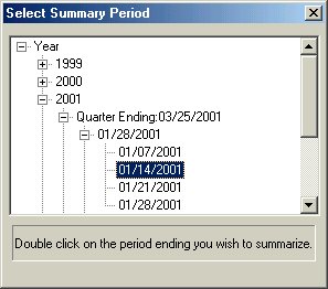 Once you select the desired Period Ending date, the program will fill in the remaining dates for you. Click on OK and a summary of the selected Employee's Payroll activity will be presented.
