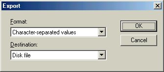 The Crystal Reports Export Dialog: This dialog box appears when you select the Export command from the Reports Dialog, preview screen of any report, or Reports Selection Criteria Dialog. Use the Export dialog box to export your report to an electronic file in a format that can be read by another software application. For example, you could export your report in Microsoft Excel format and then open it in Excel as a normal spreadsheet file. The Export facility supports several popular word processing, database, and spreadsheet formats and a number of standard data interchange formats as well.