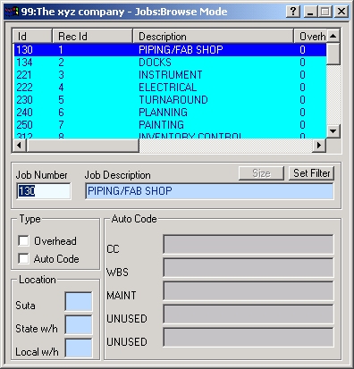 JOBS Entry/Edit Form The JOBS Entry/Edit Form allows you to View, Add, Edit or Delete JOBS.
