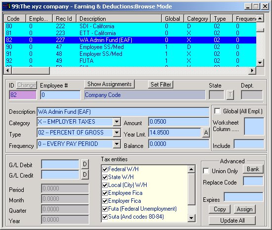 The XYZ Company sets up the Washington EAF code as